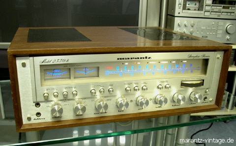 MARANTZ 2500 in Woodcase 1979 Der größte Receiver im damaligem Marantz Programm. Mit Oszilloskop, 2 x 250 Watt Sinus. Optisch sehr imposant und deshalb sehr gefragt. Im Zuge der "Receiver-Wars" wurde er durch den Marantz 2600 ersetzt, welcher 2 x 300 Watt und einen Quartz Tuner hatte. Auch wenn er polarisiert, ein Meisterwerk in der Hifigeschichte.